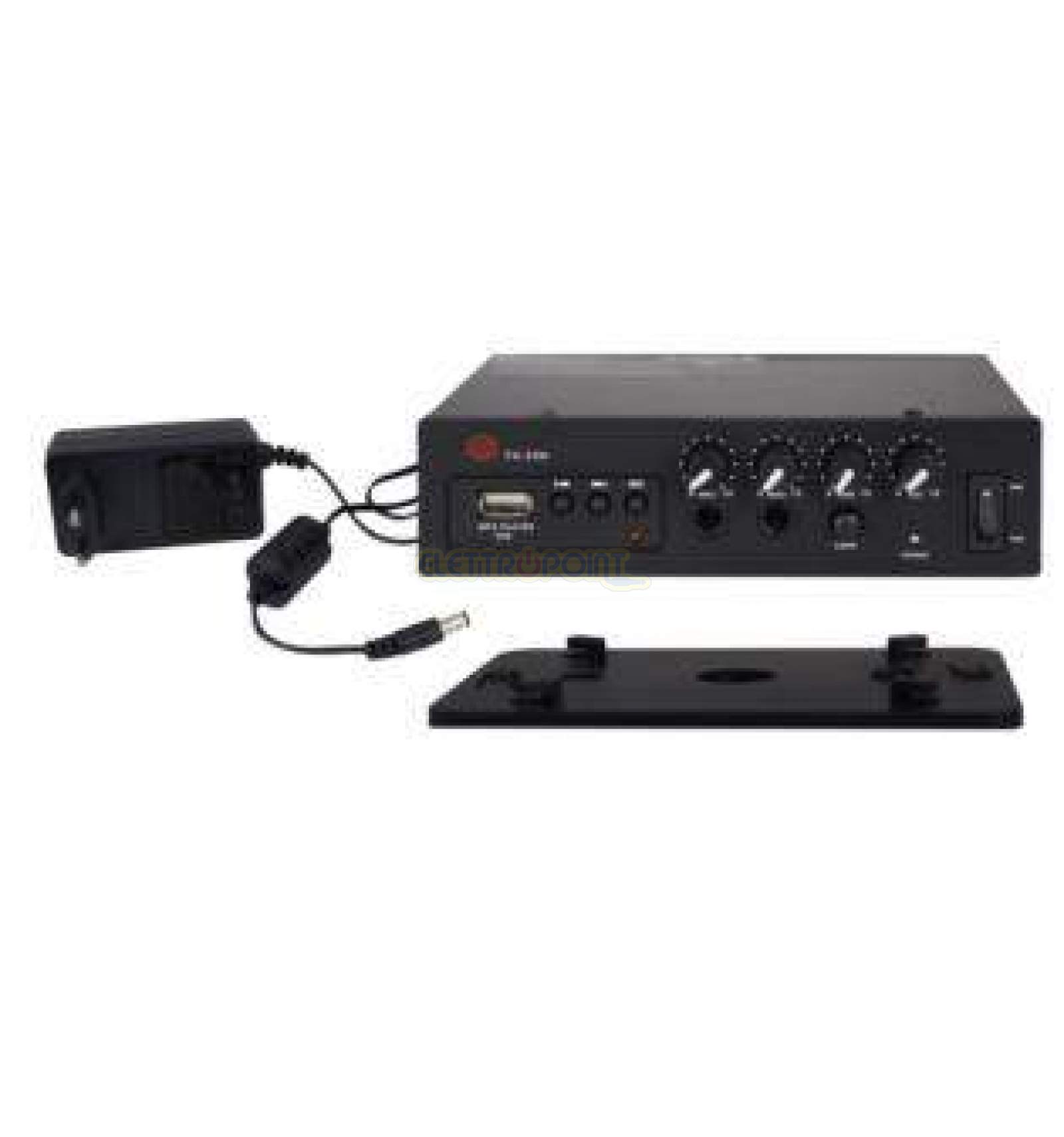 Progettato espressamente per automezzi, è munito di ingresso per due microfoni, presa AUX e un pratico lettore di chiavette USB. Consente la diffusione di voce anche con accompagnamento di sottofondi musicali. È in grado di produrre l'effetto sirena utilizzabile in caso di emergenza per richiamare l’attenzione.